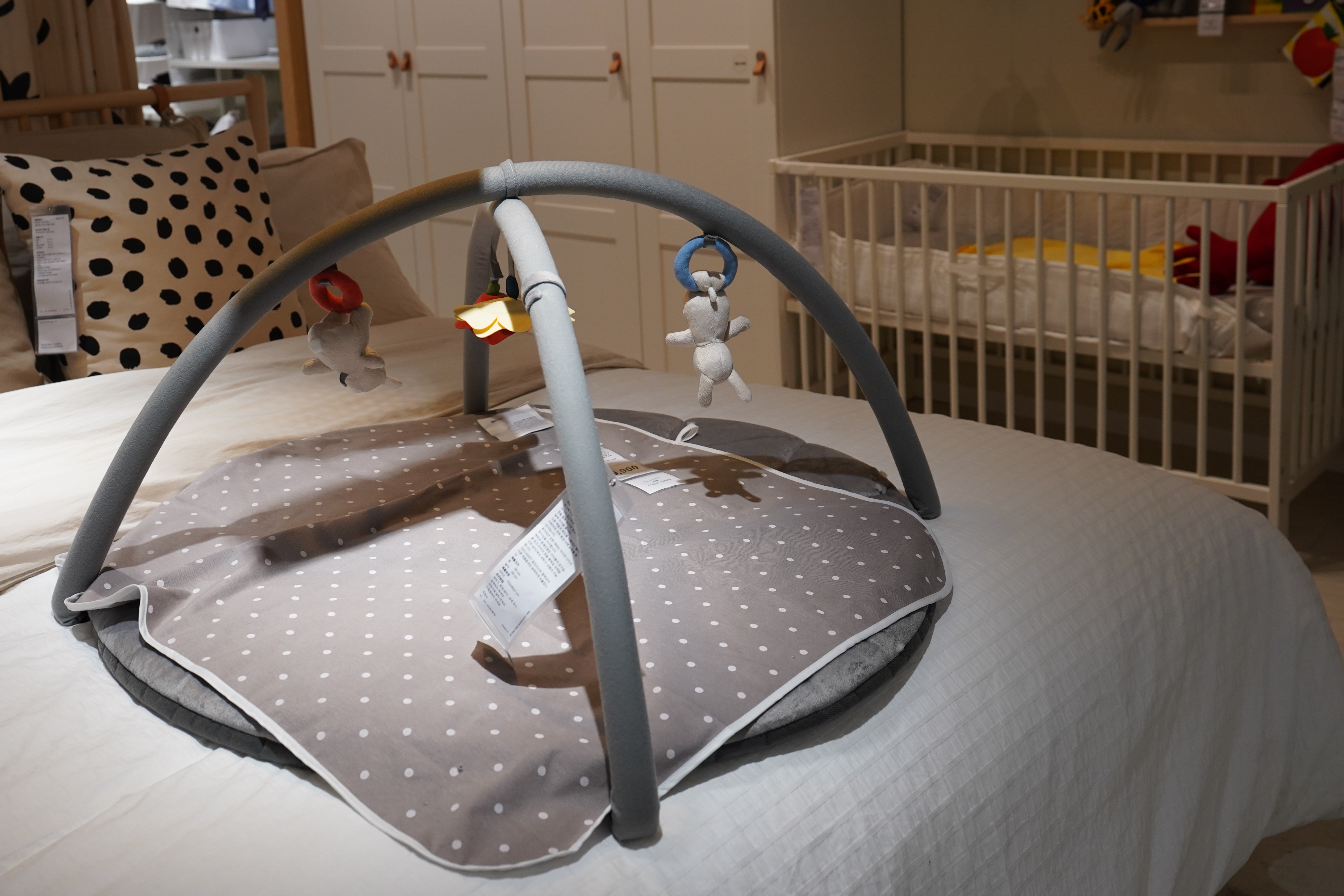 이케아 쇼룸에 디피된 인테리어 디자인입니다. 해당 인테리어 쇼룸은 영유아 아이와 함께 지낼 안방의 디자인입니다. 편리한 기능이 있다면 조명의 조도를 리모컨으로 컨트롤할 수 있습니다. 보통 모유수유 시기의 아이와 함께 지낼 경우 수유등을 별도로 설치하여 사용하는 경우가 많이 있지만 이케아 조명의 경우 스마트 LED 시스템을 적용하여 리모컨으로 컨트롤하는 것이 편리함을 제공하네요.