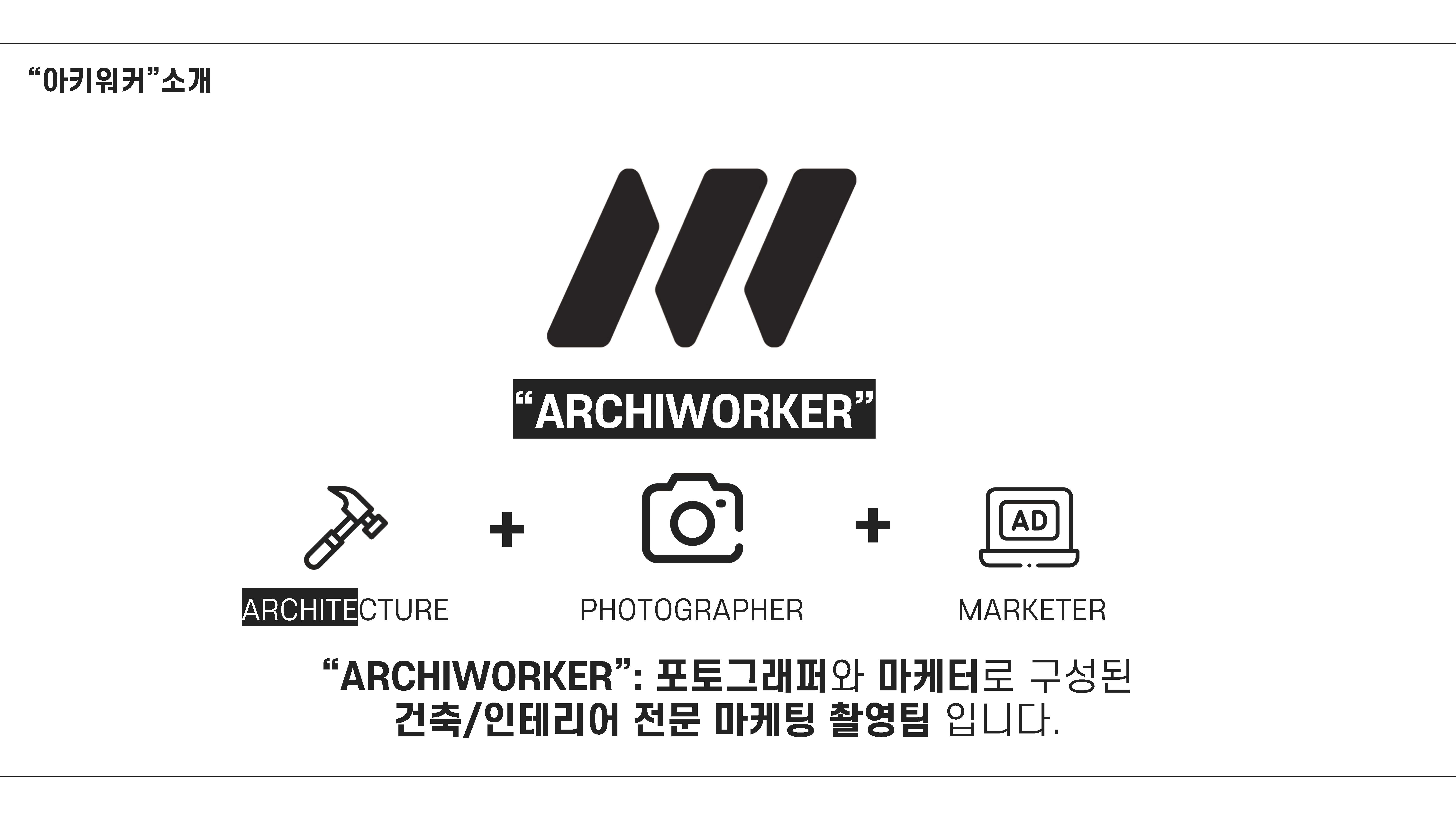 아키워커는 건축, 인테리어 촬영을 전문으로 하는 촬영/마케팅 팀입니다.