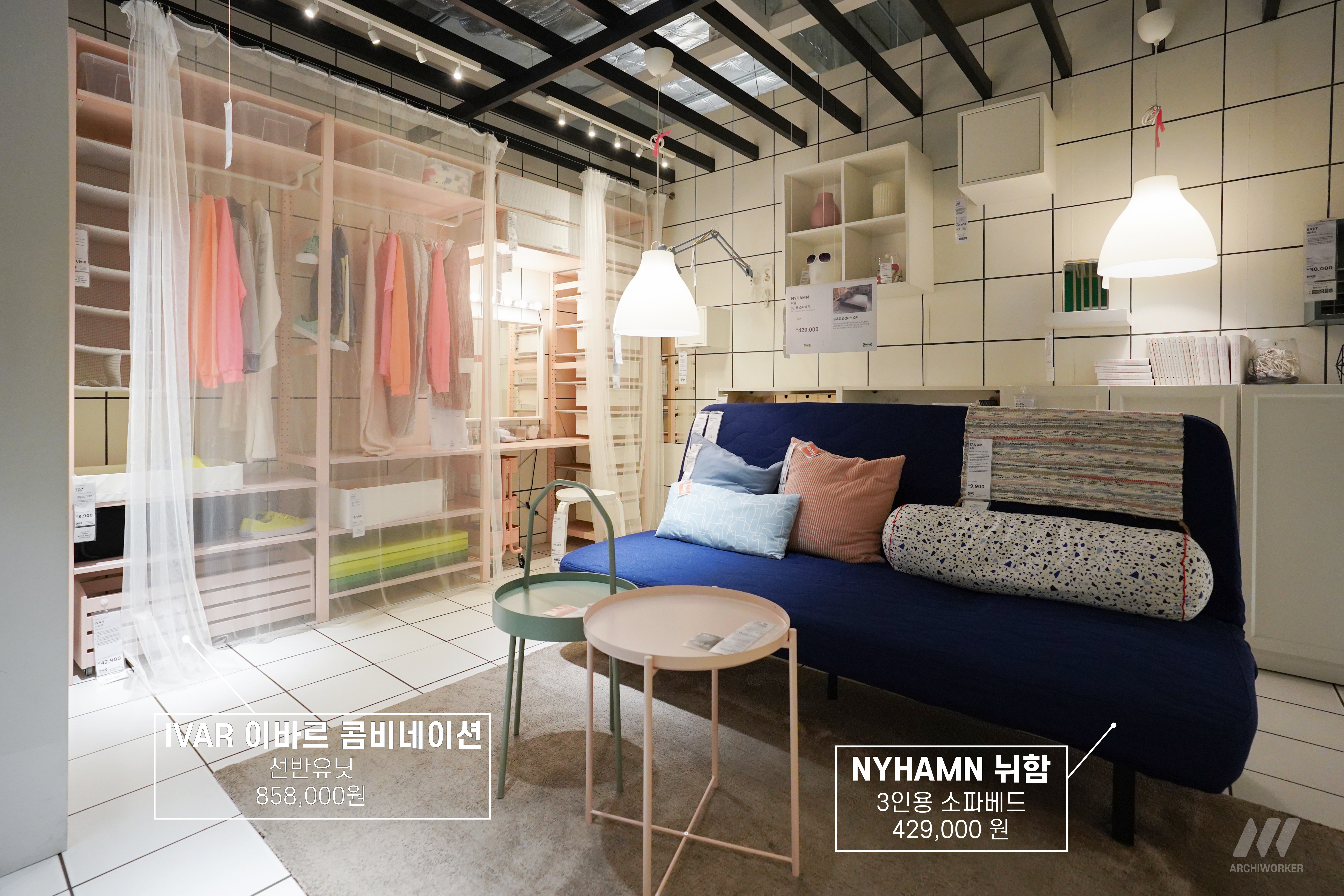 "그리드로 완성된 나만의 스튜디오" 이케아 침대 소파 와 선반유닛
