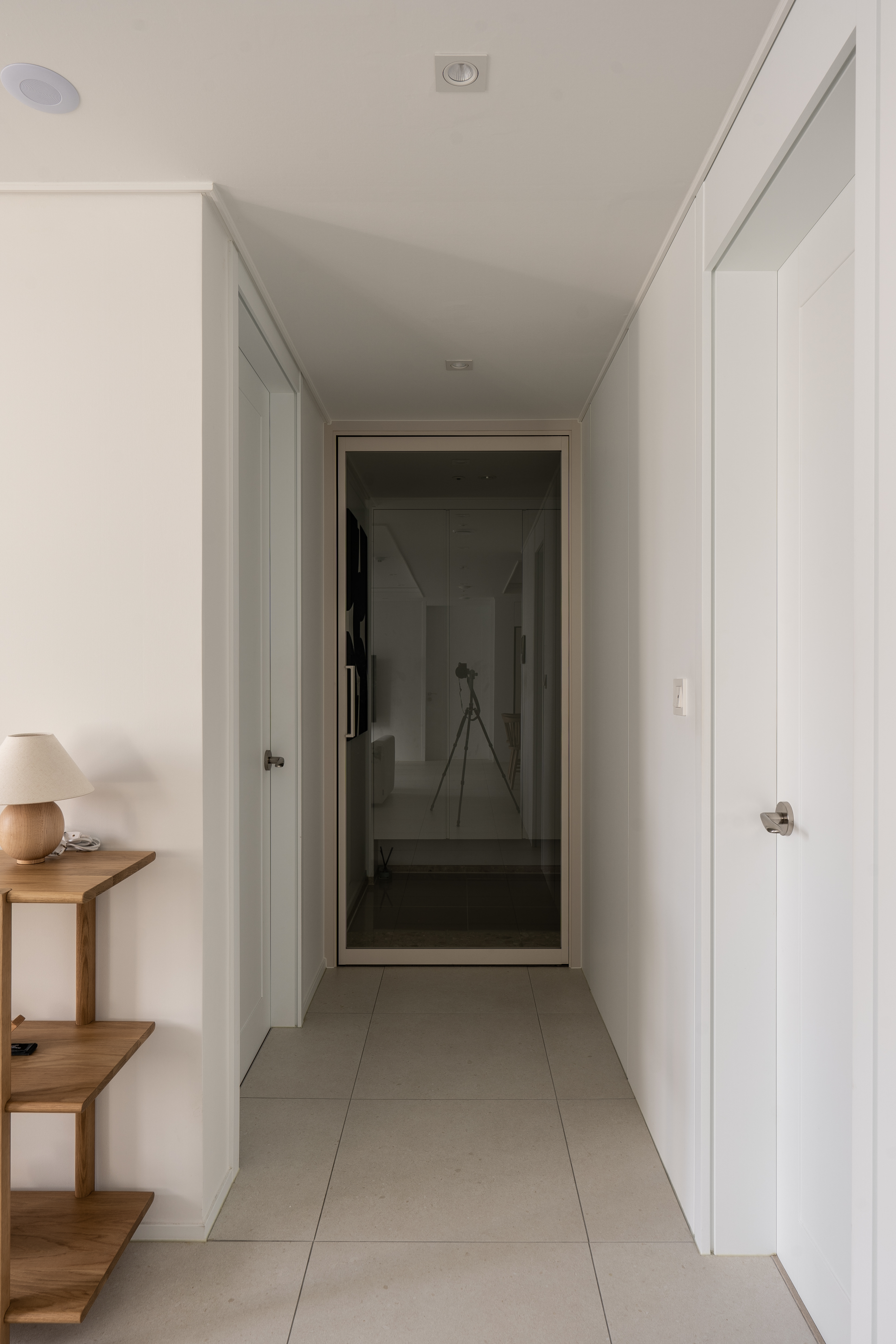 중문의 역할은 현관 밖에서 들어오는 소음과 외풍을 막기 위한 용도로 쓰이면서 중문만 시공을 전문으로 하는 업체가 생길 정도로 설치하는 분들이 점점 많아졌습니다. 포스팅에 올려드릴 해당 아파트의 중문은 유리로 설치하여 소음과 외풍은 차단하고 개방감을 확보했습니다. 현관 입구 전면 액자는 바닥과 벽컬러의 대비 색을 걸어줌으로 써 휑해 보일 수 있는 현관을 고급스럽게 만들어줍니다.