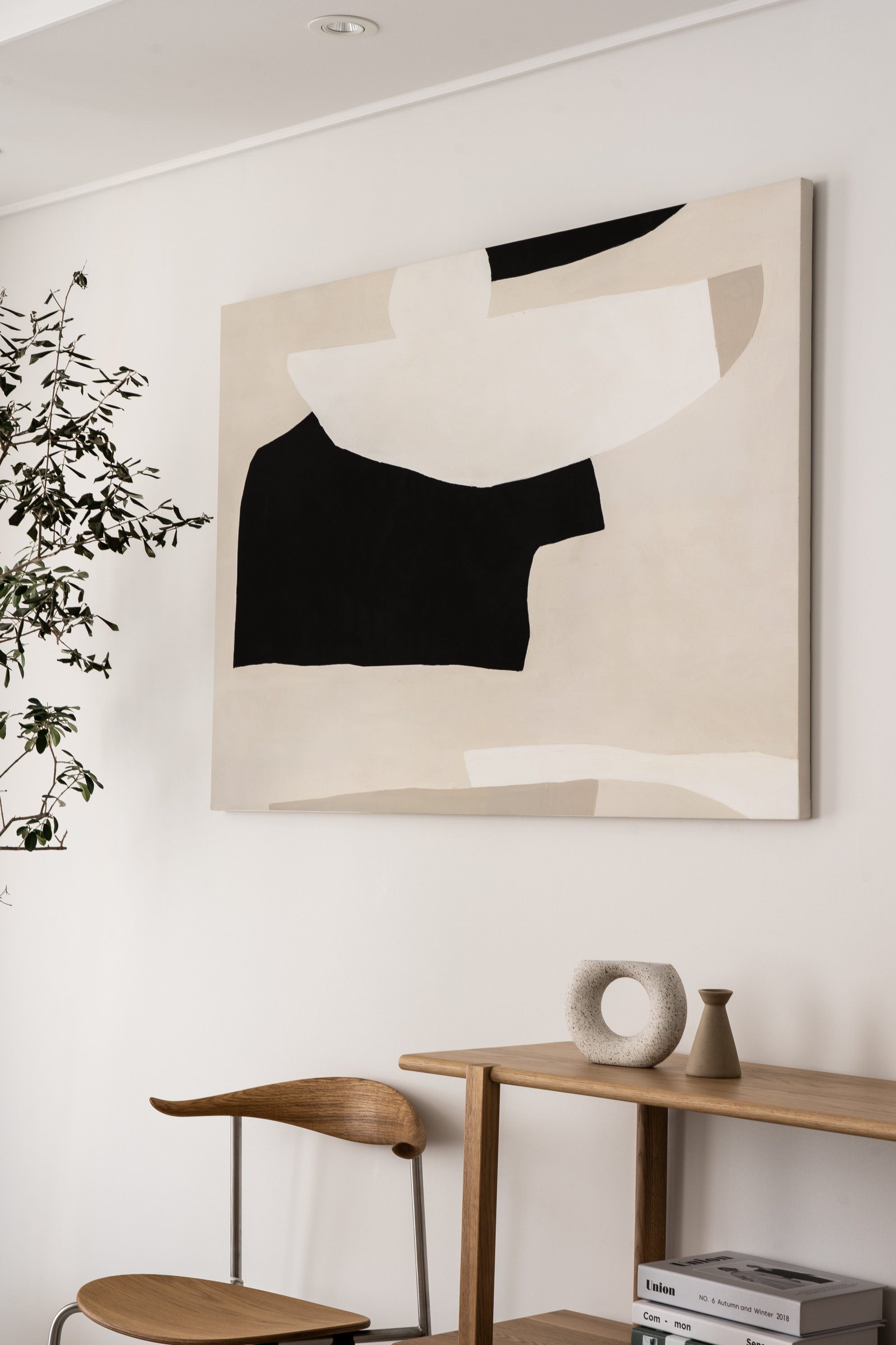 소파 뒤쪽으로 새로운 공간을 만들면서 가장 눈에 들어온 부분은 컬러감이었습니다. 내부 인테리어와 가구, 액자 모두 톤앤톤으로 컬러감을 맞추면서 전체적인 공간이 주는 따듯한 느낌이 좋았습니다.