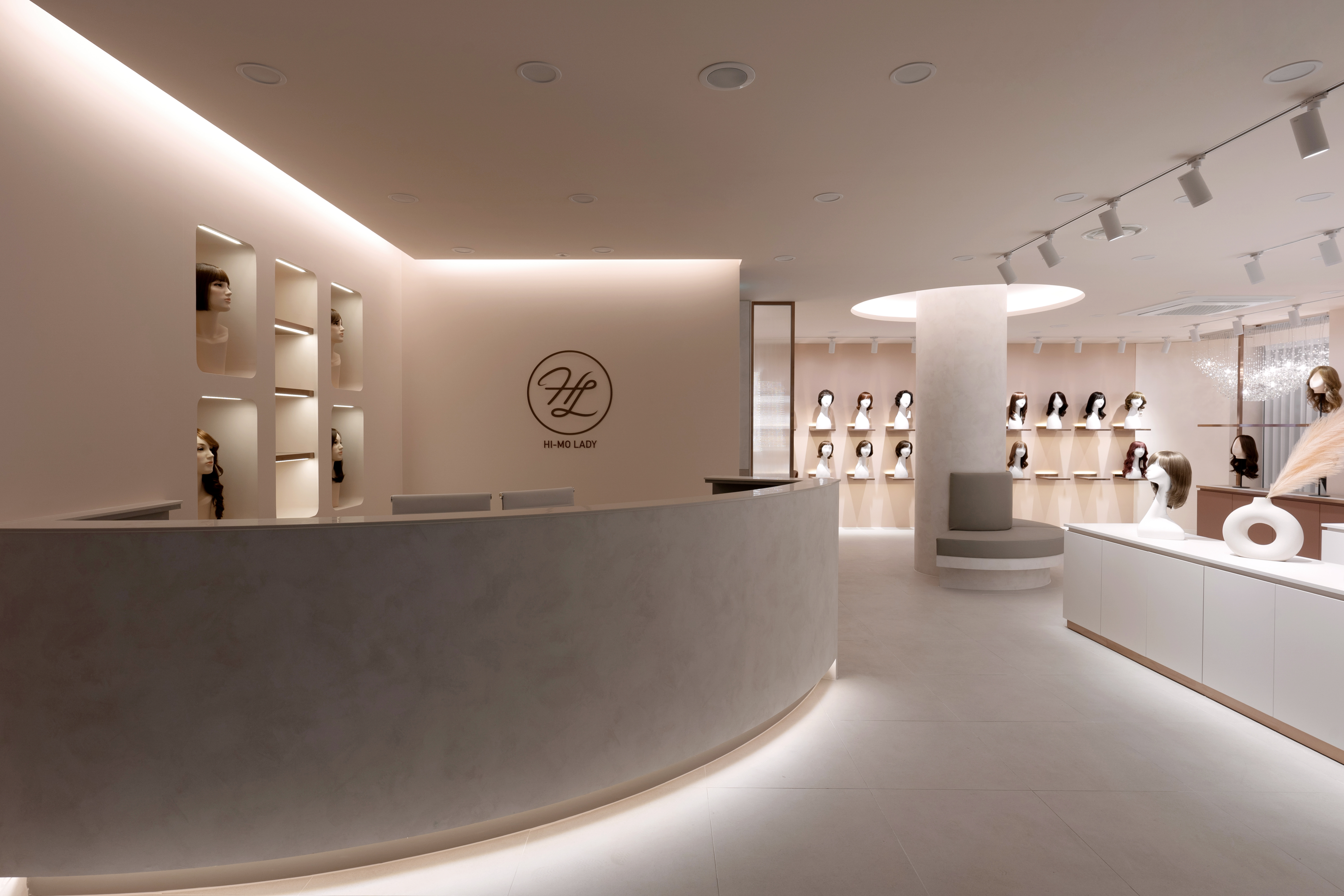 가발 매장이라고 하기보다는 헤어숍에 가까운 디자인으로 인테리어가 되었습니다. 단순히 기성상품의 가발을 머리게 씌우기보다는 얼굴형과 얼굴 톤에 맞는 컬러의 가발을 매칭하여 제작과 스타일링까지 할 수 있는 프라이빗 한 공간이 연출되었습니다.