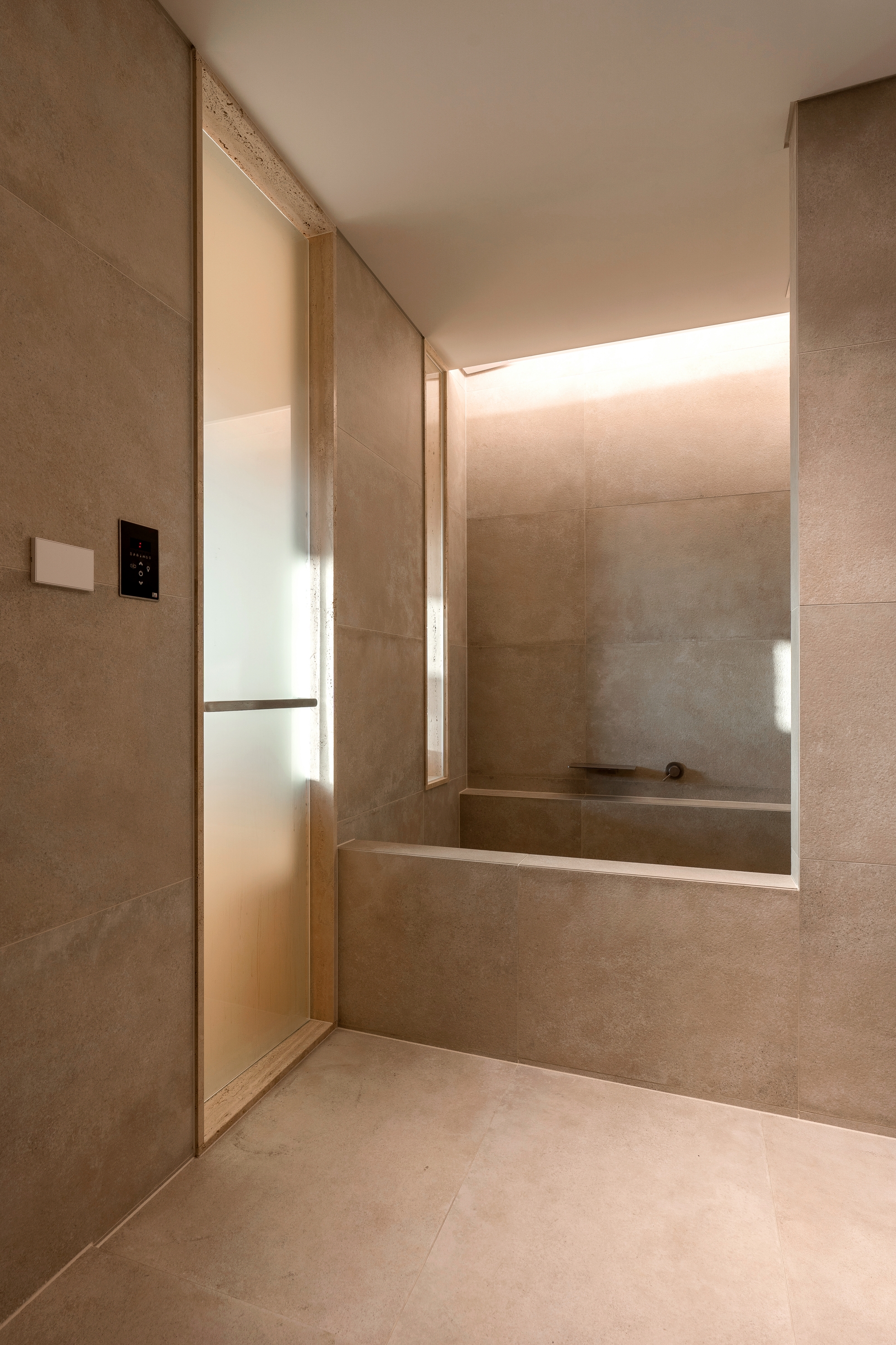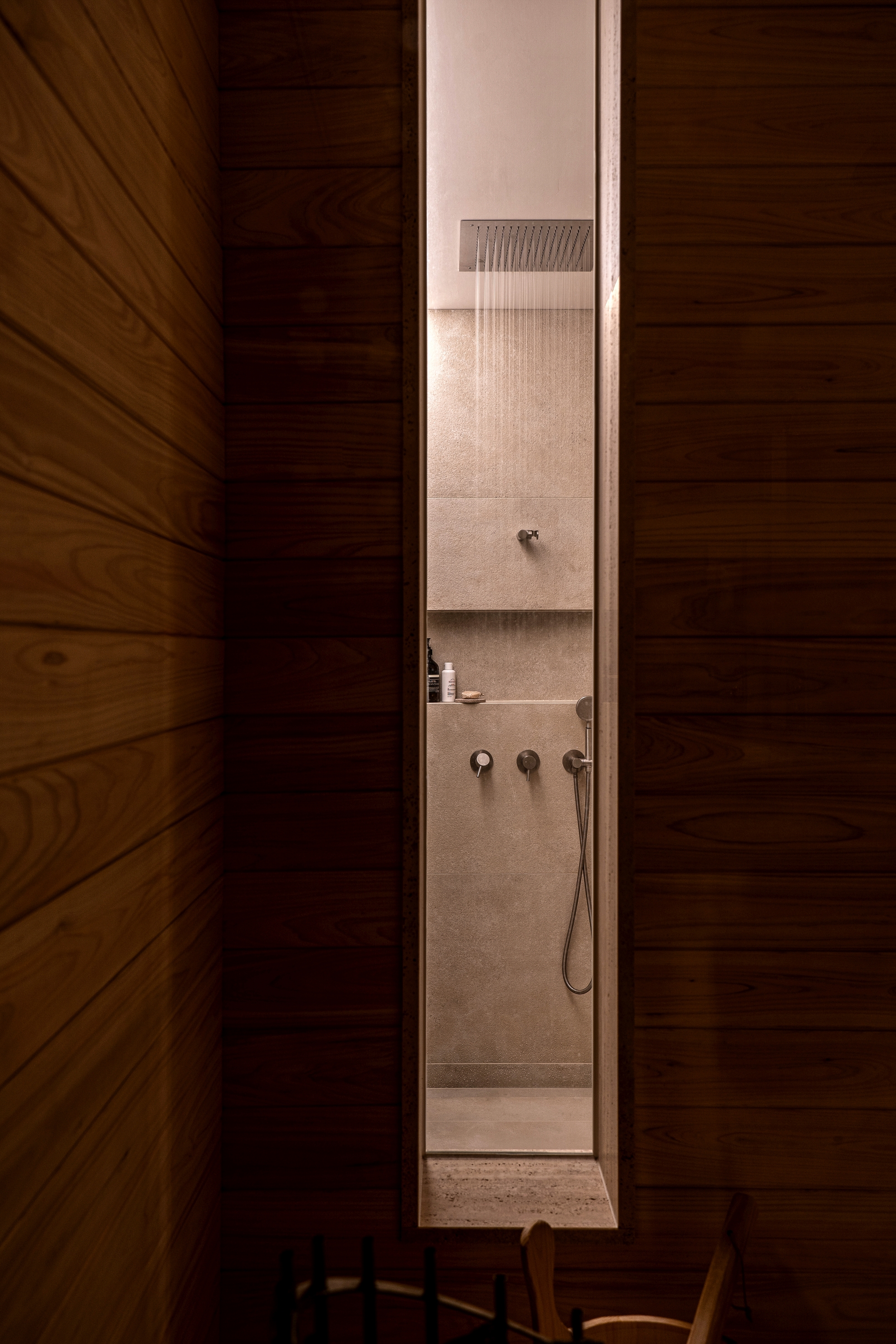 누구나 꿈꾸는 그런 공간이 아닐까 생각됩니다. 바로 사우나 공간인데요. 화장실을 통해서 이어진 건식 사우나는 안방과 연결된 창을 통해서 햇살을 받아들이기도 해가 진 뒤의 야경을 바라보기도 할 수 있게 설계되었습니다.