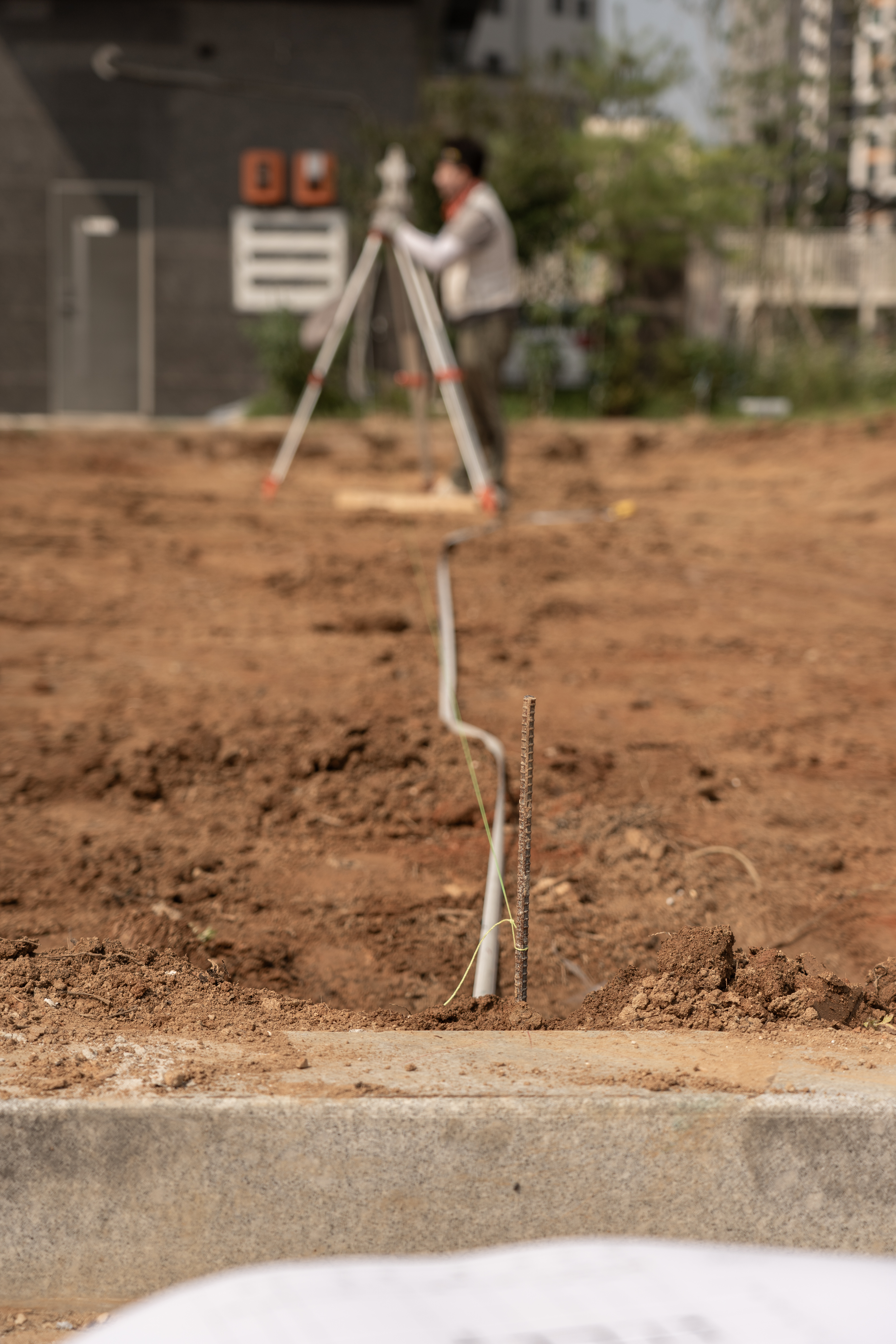 쉽게 설명하자면 경계측량이 끝난 땅위에 건물이 올라갈 평면도를 간단하지만 정확히 그려 기초공사 작업을 위한 기초작업입니다. 이때 땅위에 기둥을 박고 실을 당겨 터파기 할 위치를 표시하는데, 기초공사가 들어가기 전까지 실의 위치가 최대한 움직이지 안도록 고정시키는 것이 중요합니다.