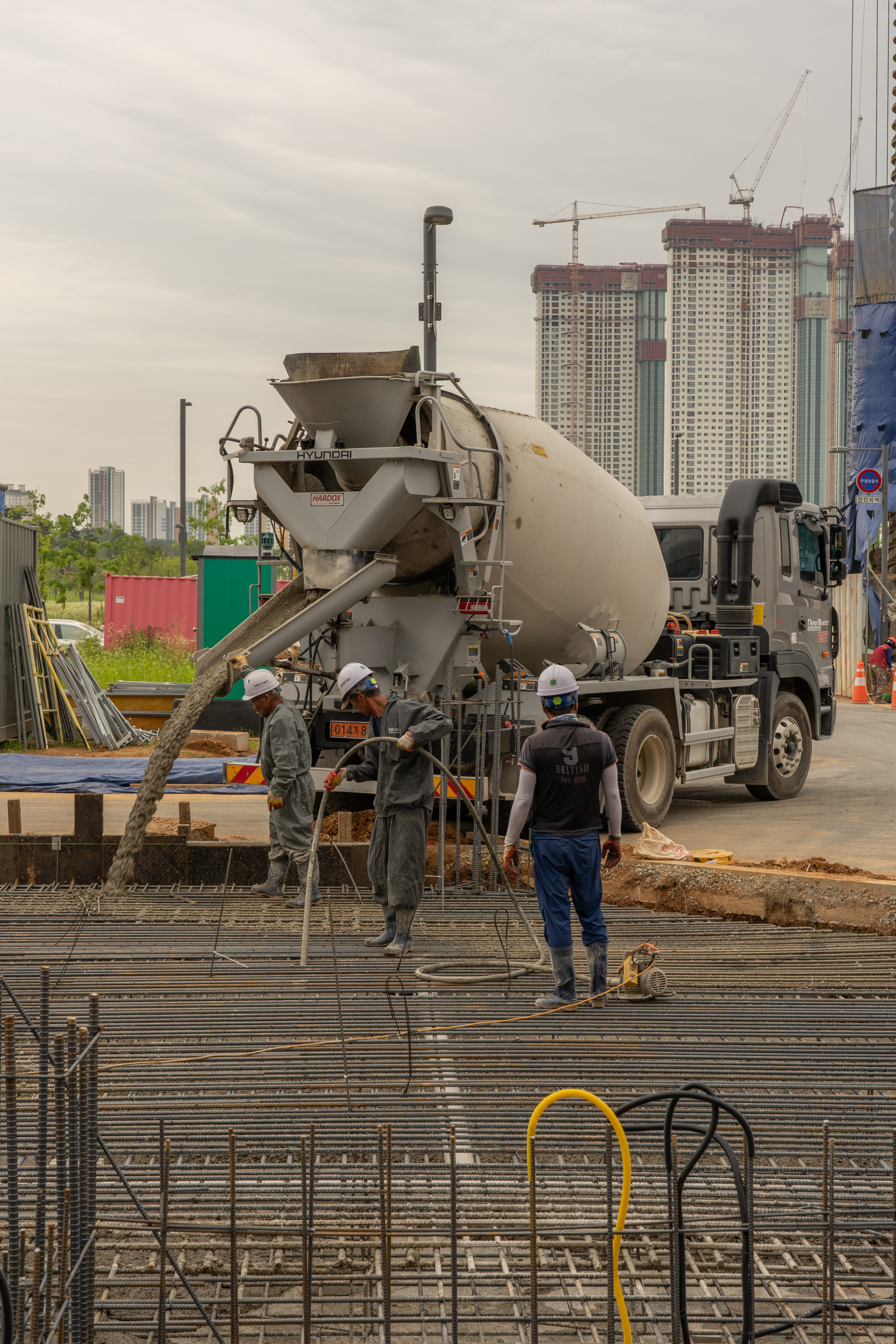 바닥 기초 토목공사 중 콘크리트 타설은 중요한 부분 중 하나입니다. 특히 콘크리트 타설은 기온과 습도, 바람에 민감하기 때문에 아주 기본적이지만 많이 신경 써야 하는 부분인데요. 특히나 최근 순살자이, 흐르지오, 통뼈캐슬 등의 대형건설사 부실시공 논란의 문제가 바로 콘크리트 타설입니다.
