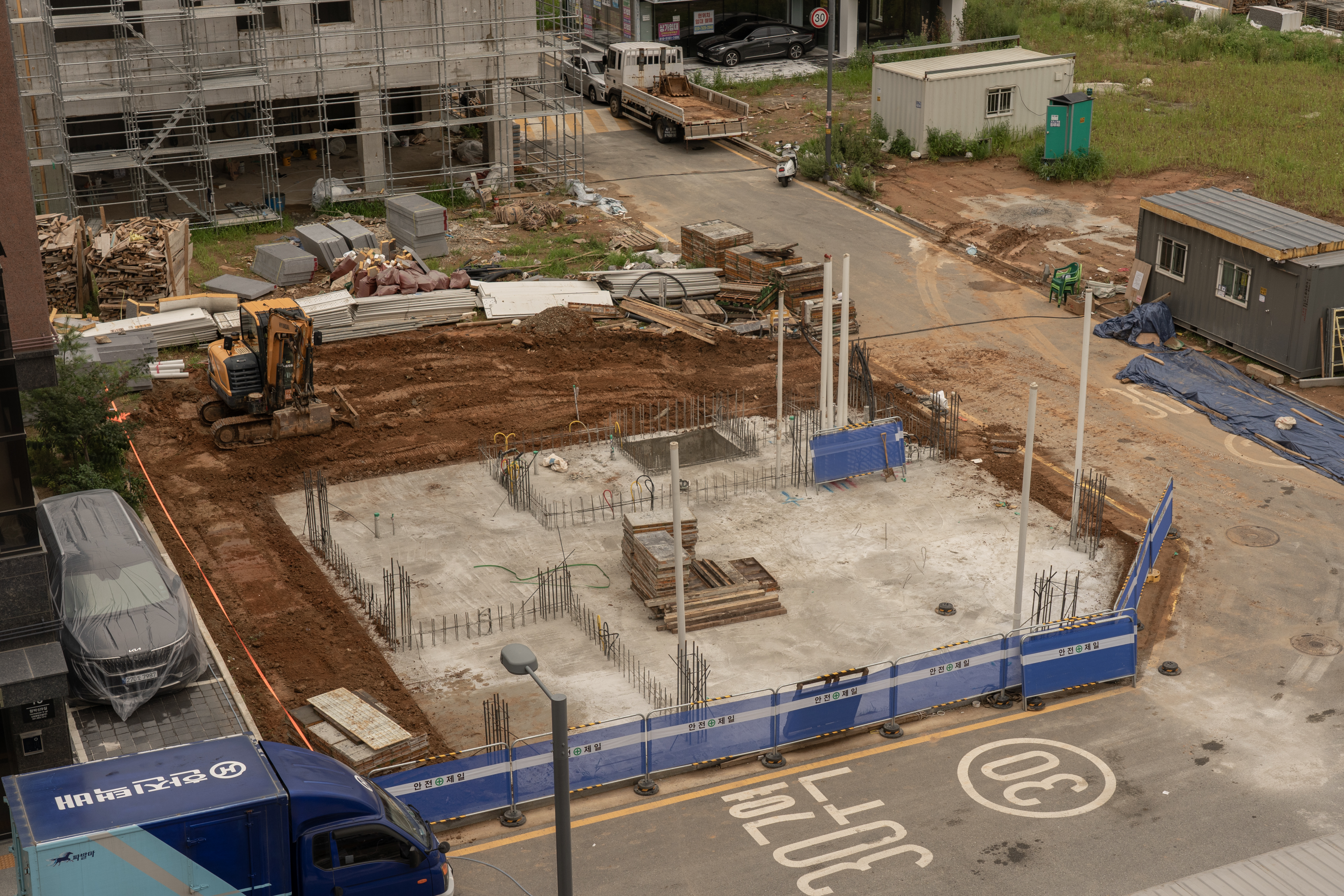 그렇듯 기초공사 틀 주변부 되메우기 시 흙을 채우고 단단하게 다져 지내력을 높이는 것에 신경 써야 하며 빗물 배수(물 빠짐)가 잘 이루어져야 합니다. 이것은 빗물 고임으로 발생하는 지반침하와 안전사고를 사전에 예방할 수 있는 가장 기본적인 내용입니다.