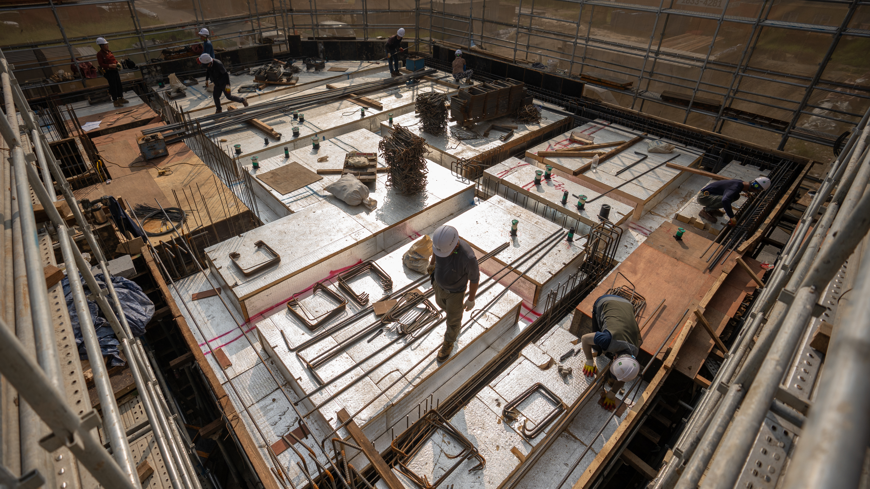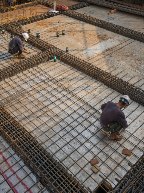 상가주택 1층이 중요한 이유는 무엇일까? 천장 거푸집과 단열작업이 끝난 평택 고덕 상가주택 현장은 1층 슬라브 철근 배근과 설비 작업이 한창입니다.